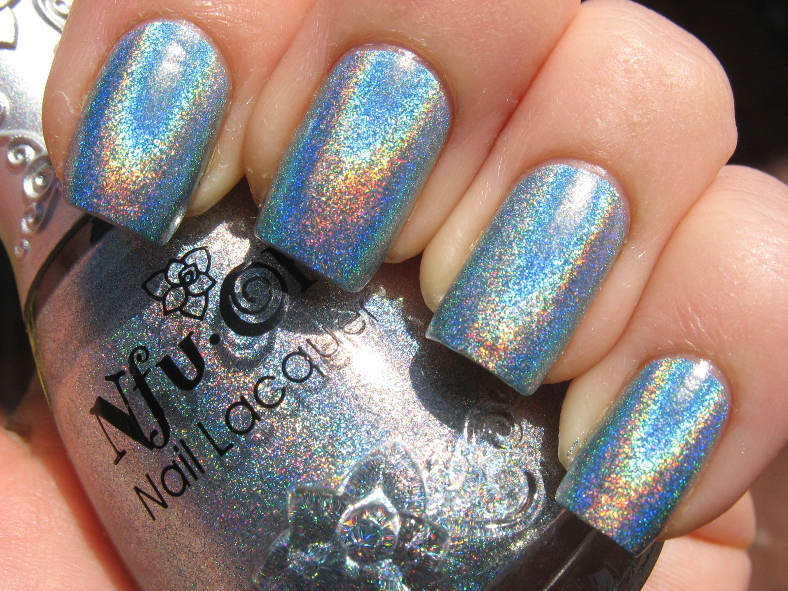 More holo?! Sure why not, it's sunny outside! I think So Cal (LA especially) will be the envy of the country this weekend. It's expected to be 76 degrees today and 79 tomorrow. That's almost beach weather! Since I like to rake full advantage of the sun while it's out I decided to wear another holo. This is Nfu Oh 65. This is a light Cinderella blue small particle linear holo. This was 3 coats. At least three or four minutes between coats in required to prevent dragging but with the wait time, application becomes perfect. Out of all the holos I own. this is my all time favorite. But seriously, is it hard to see why?