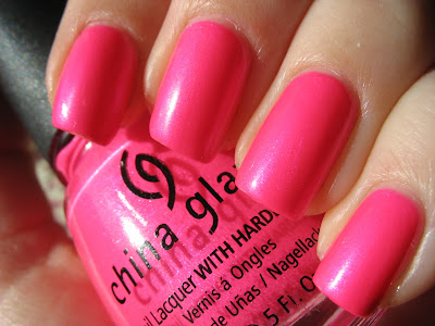 Let me just start out by saying that these pictures are not color accurate. I don;t know what it is about neon, but it just does not want to cooperate and be photographed. Camera always wary neons and make seem so much morning than they really are. In real life, Pink Voltage is a neon, retina searing, hot pink. This neon is crazy!! It's so bright and so pink and it's got this gorgeous fuschia shimmer in it. One of my favorite neon polishes ever and since it's about 82 degrees outside, it's the prefect time to wear it. Seriously though, these pics do no do this polish justice. You just have to see this in real life!
